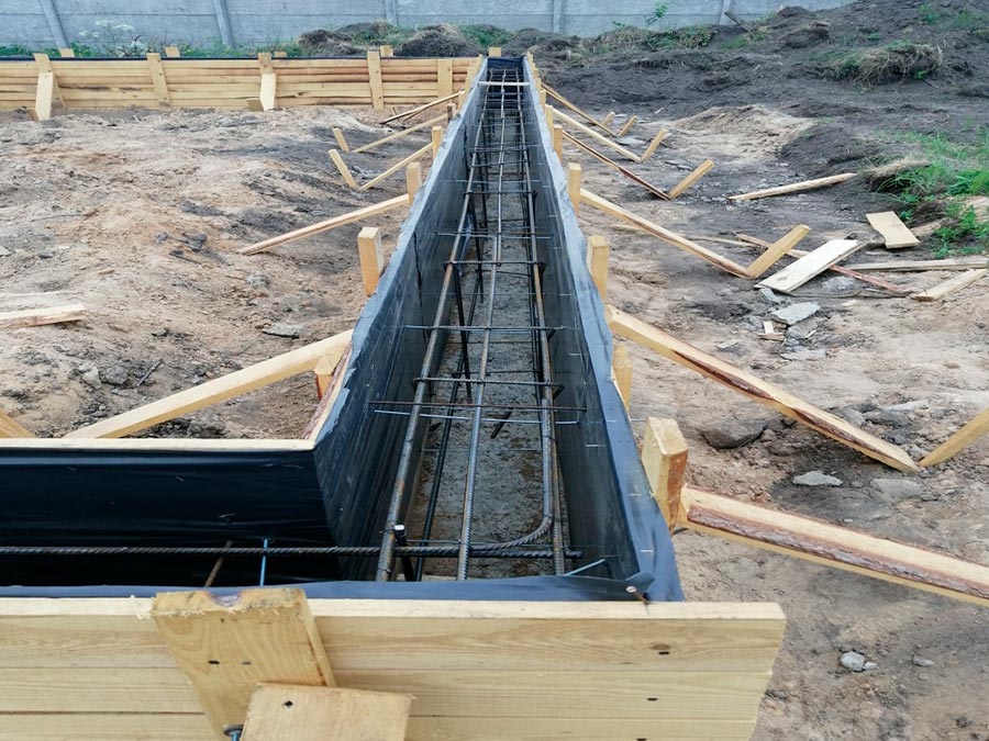 Похожий тип фундамента можно чаще всего встретить на наших стройках. Он надежен и подходит практически для любого строения. Монтаж его можно произвести вручную, имея под руками бетономешалку и пару помощников. В основном этот тип фундамента строители предпочитают использовать для зданий, у которых предусмотрен подвал или теплое подполье.